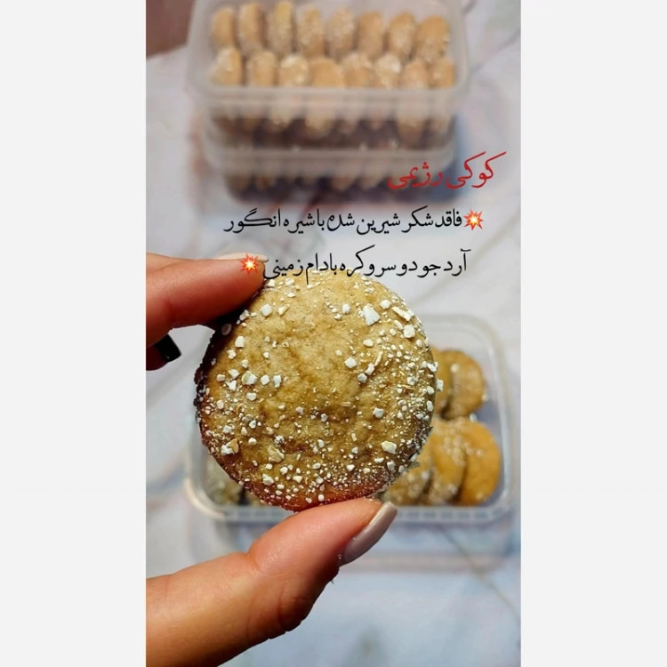 کوکی رژیمی فاقد شکر وآرد سفید حاوی کره بادام زمینی وشیره انگور وآرد جو دوسر